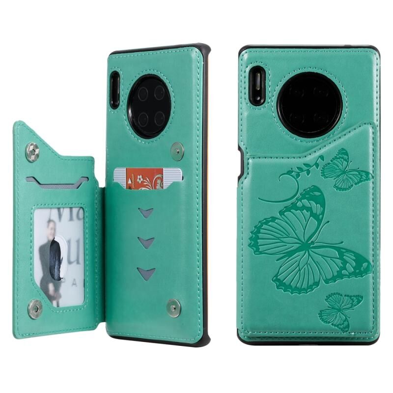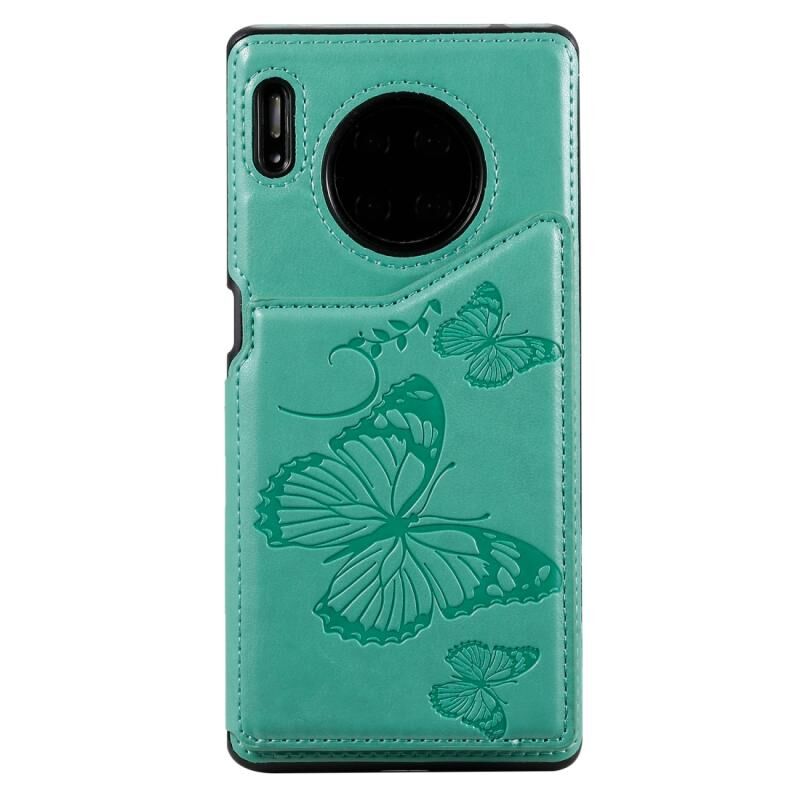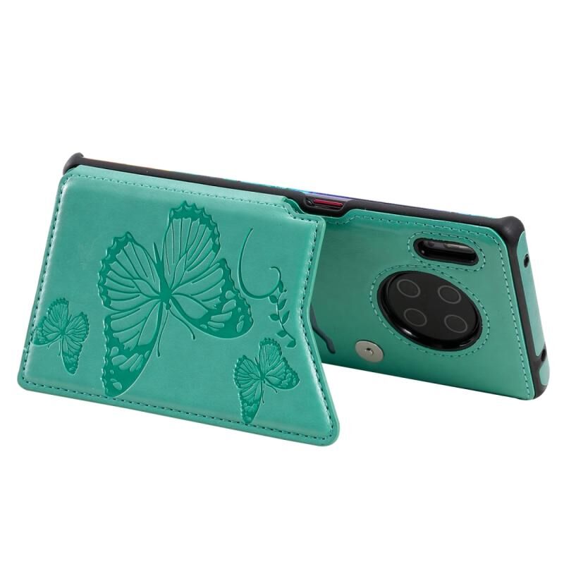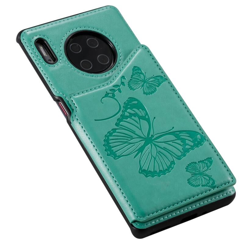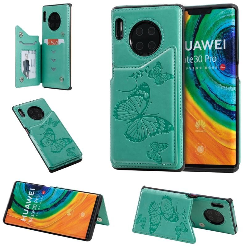 Θήκη προστασίας για Huawei Mate30 Pro με ανάγλυφο σχέδιο πεταλούδας, αντικραδασμική, με βάση στήριξης, θήκες για κάρτες & κορνίζα φωτογραφιών (πράσινο)