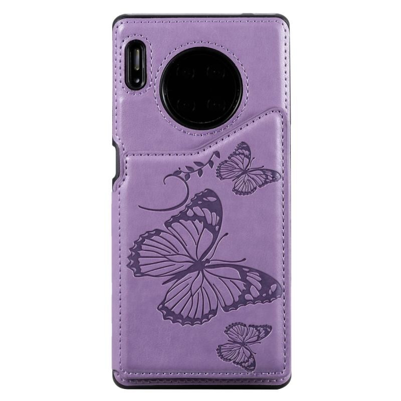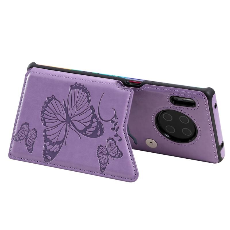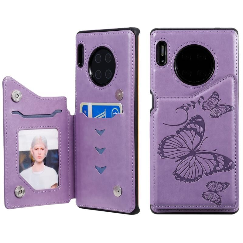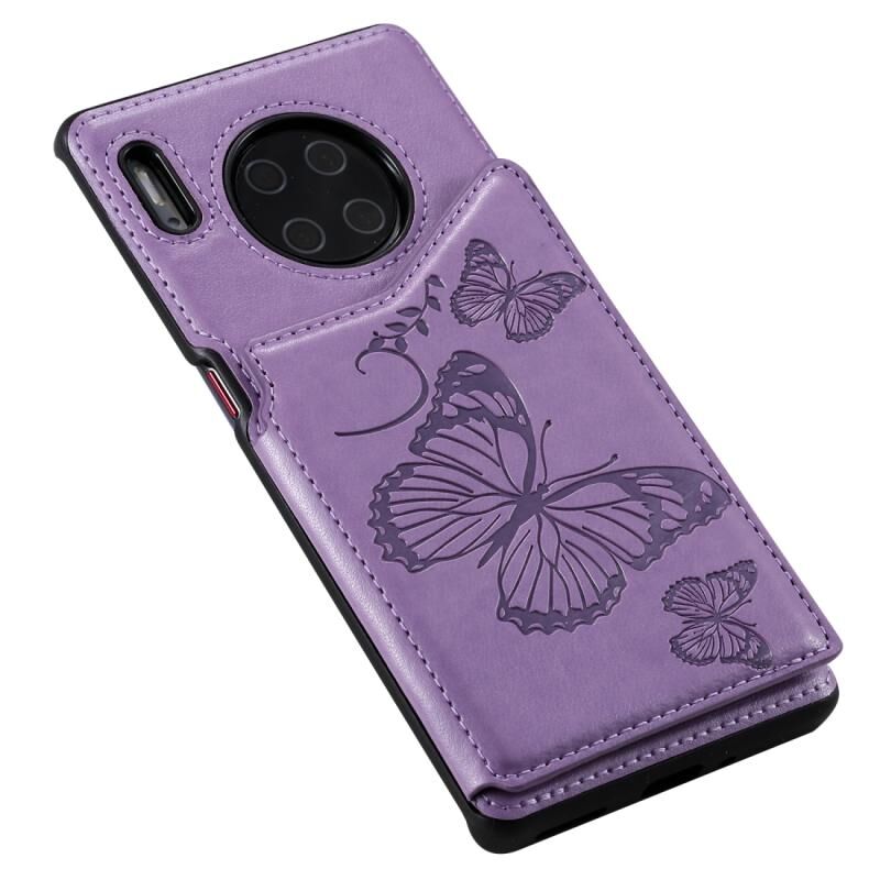 Θήκη προστασίας για Huawei Mate30 Pro με ανάγλυφο σχέδιο πεταλούδας, αντικραδασμική, με βάση στήριξης, θήκες για κάρτες & κορνίζα φωτογραφιών (Μωβ)