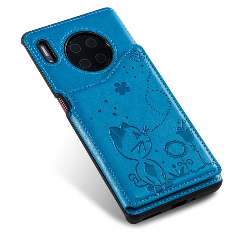 Θήκη προστασίας με αντικραδασμική προστασία και ανάγλυφο σχέδιο Cat Bee για Huawei Mate30 Pro, με υποδοχές καρτών & κορνίζα φωτογραφιών (Μπλε)