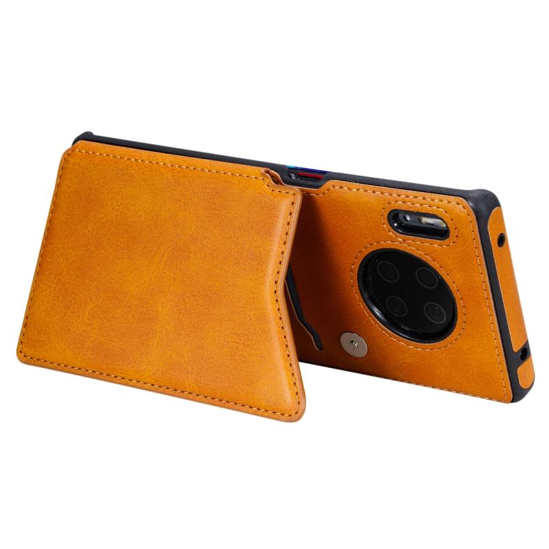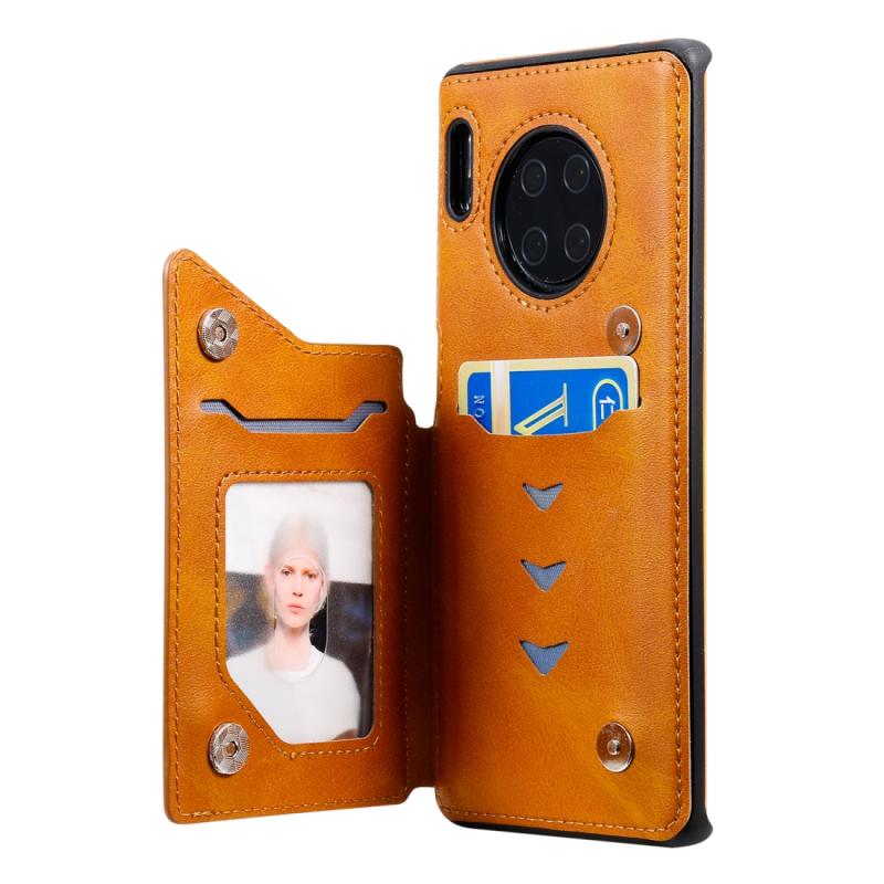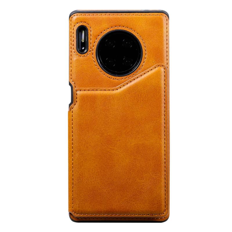 For Huawei Mate30 Pro Solid Color Calf Texture Shockproof Protective Case with Card Slots & Photo Frame(Borwn)