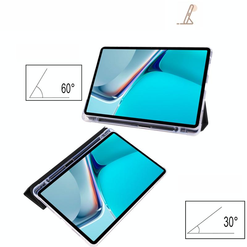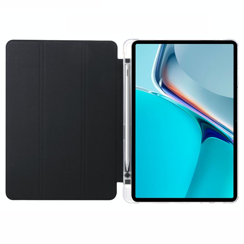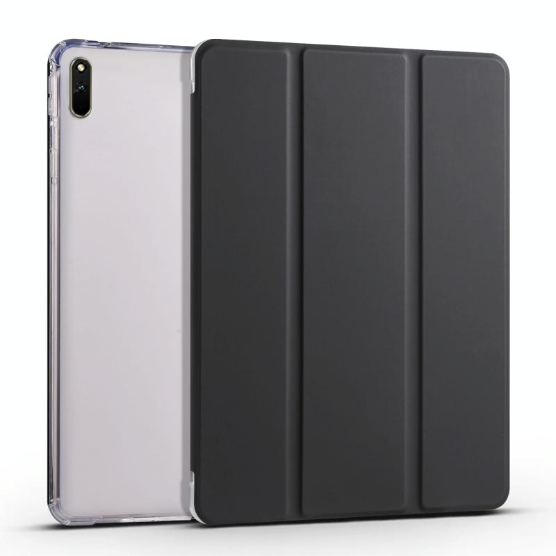 For Huawei MatePad 11 2021 3-folding Transparent TPU Smart Leather Tablet Case(Black)