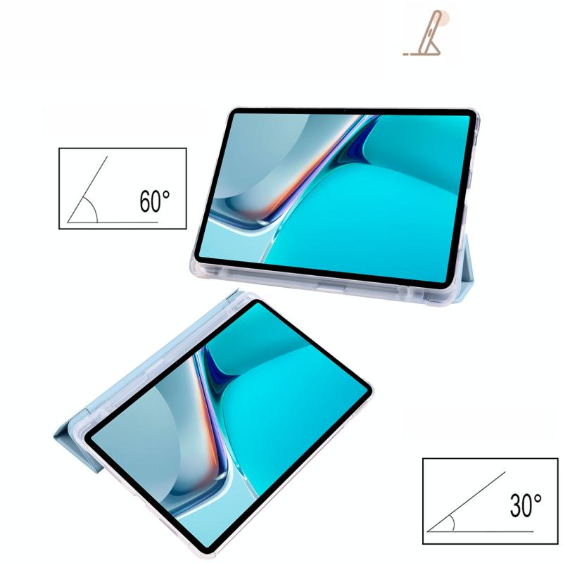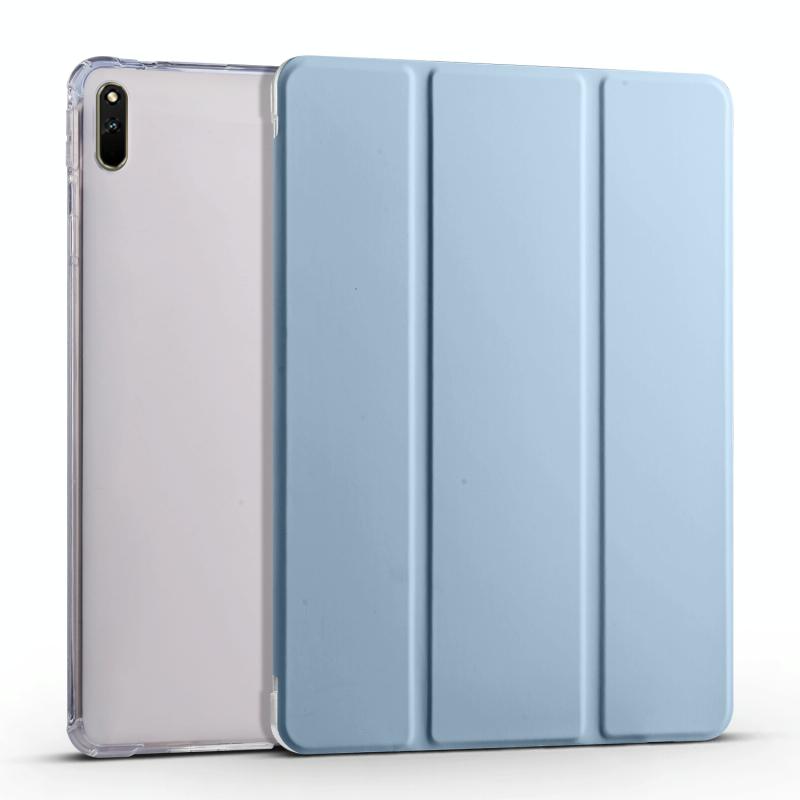 For Huawei MatePad 11 2021 3-folding Transparent TPU Smart Leather Tablet Case(Ice Blue)