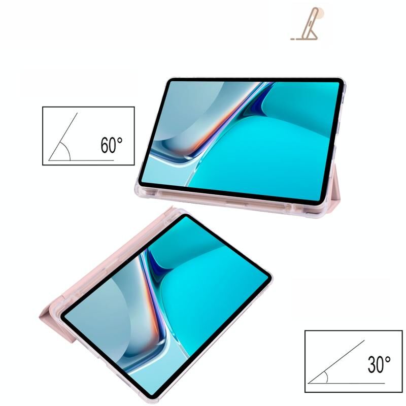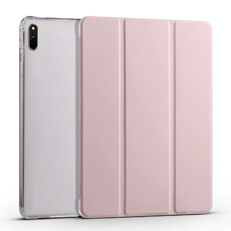 For Huawei MatePad 11 2021 3-folding Transparent TPU Smart Leather Tablet Case(Ice Pink)