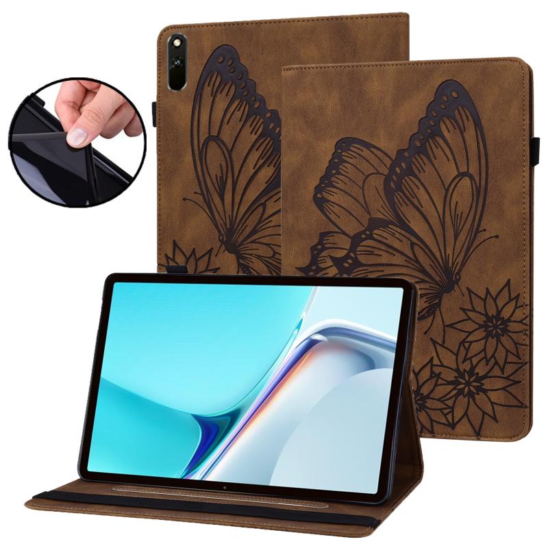 For Huawei MatePad 11 2021 Big Butterfly Embossed Leather Tablet Case(Brown)