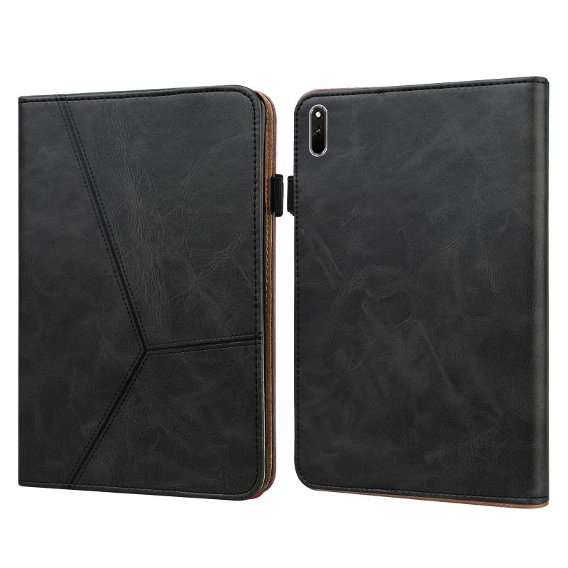 Θήκη δέρματος με ανάγλυφο ριγέ σχέδιο και μονόχρωμη εμφάνιση για Huawei MatePad 11 (2021) (Μαύρο)