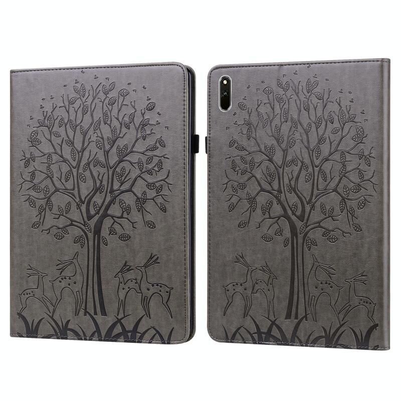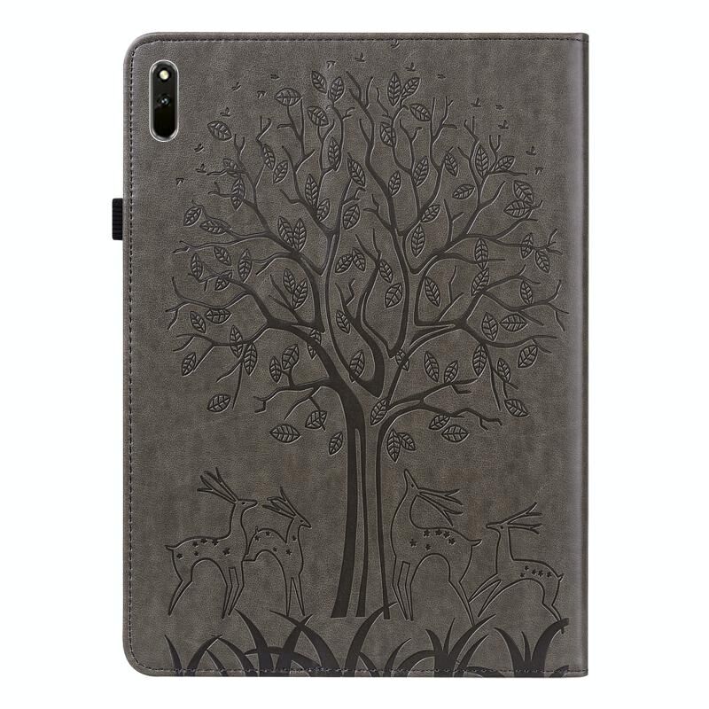 For Huawei MatePad 11 2021 Tree & Deer Pattern Pressed Printing Horizontal Flip PU Leather Case with Holder & Card Slots(Grey)