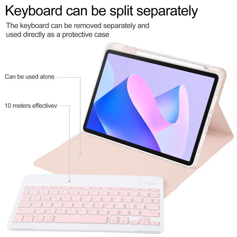 Για το Huawei MatePad 11 2023 / 2021 Πλατεία Button Backlight Bluetooth πληκτρολόγιο περιστρεφόμενο κάτοχος δερμάτινη θήκη (Rose Gold)