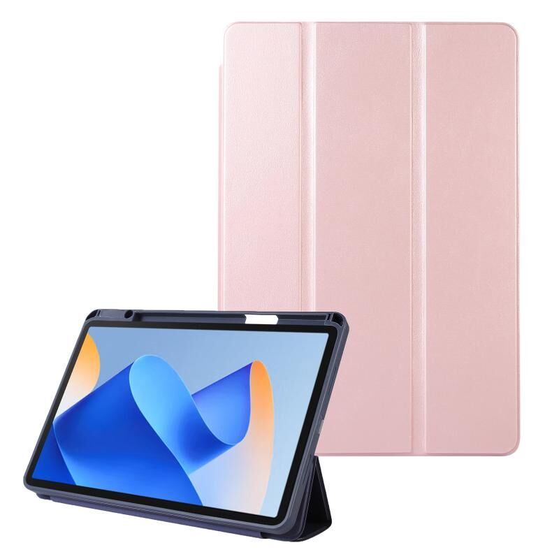 Για το Huawei MatePad 11 2023 Αμιγές χρώμα 3-πτυσσόμενη δερμάτινη θήκη tablet (ροζ χρυσό)