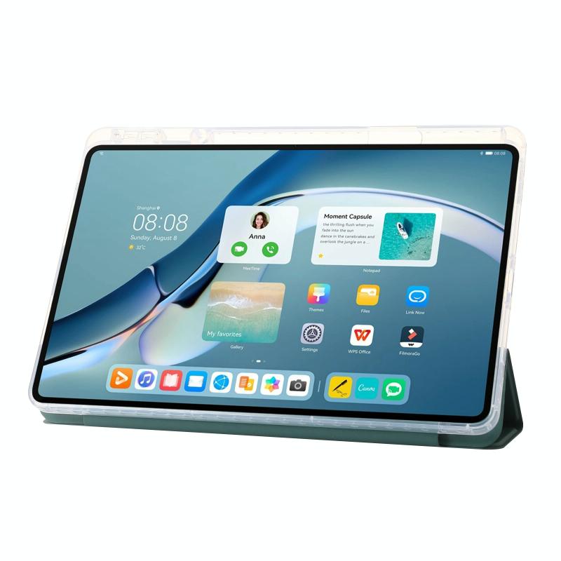 For Huawei Matepad 11 Pro 2022 Clear Acrylic 3-Fold Leather Tablet Case(Dark Green)