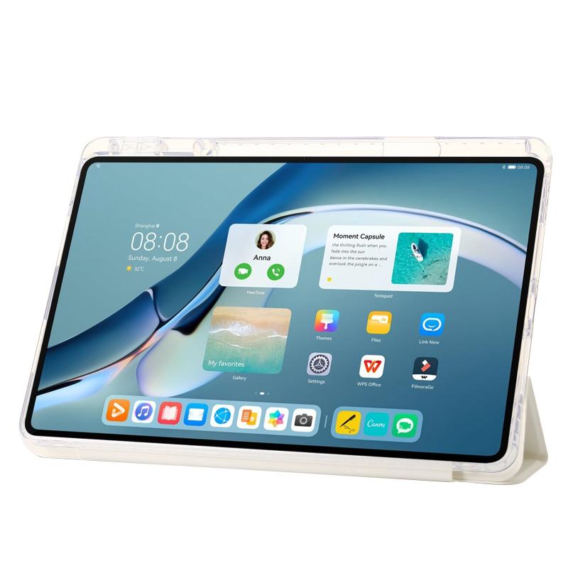 For Huawei Matepad 11 Pro 2022 Clear Acrylic 3-Fold Leather Tablet Case(White)