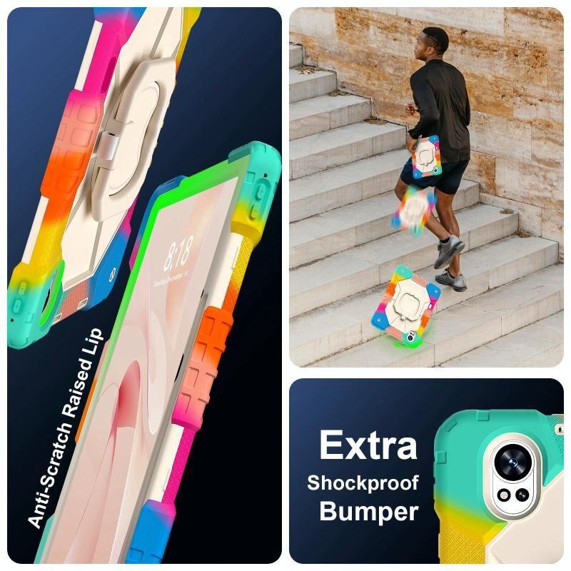 6. Αποσπώμενος ιμάντας ώμου: Ο ρυθμιζόμενος ιμάντας χειρός παρέχει εύκολο και άνετο κράτημα, ένα απαραίτητο χαρακτηριστικό όταν παρουσιάζετε το tablet σας σε άλλους. Ο αποσπώμενος και ρυθμιζόμενος ιμάντας ώμου μπορεί να σας βοηθήσει να μεταφέρετε το tablet σας με μεγαλύτερη ασφάλεια κατά την πεζοπορία, τα ταξίδια και άλλες υπαίθριες δραστηριότητες. Μπορεί επίσης να χρησιμοποιηθεί για να στερεώσετε το tablet σας στο κάθισμα του αυτοκινήτου.
