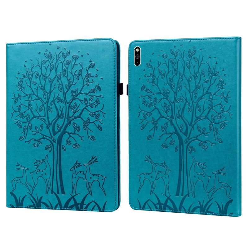 For Huawei MatePad Pro 10.8 2021 Tree & Deer Pattern Pressed Printing Horizontal Flip PU Leather Case with Holder & Card Slots(Blue)