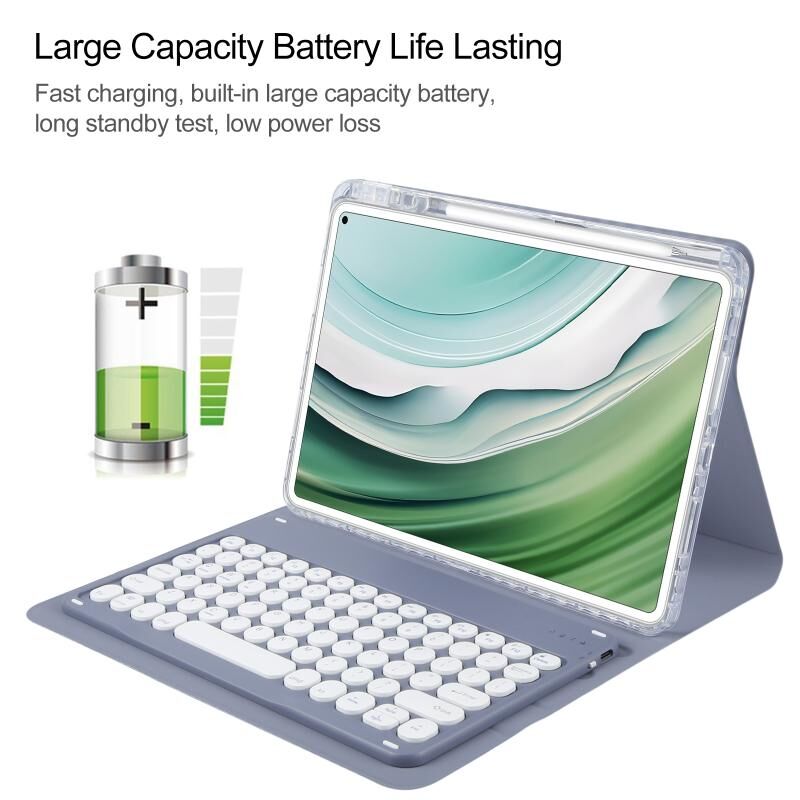 Για Huawei MatePad Pro 11 2024 / 2022 στρογγυλό κουμπί Bluetooth πληκτρολόγιο περιστρεφόμενο κάτοχος δερμάτινη θήκη (μωβ λεβάντα)