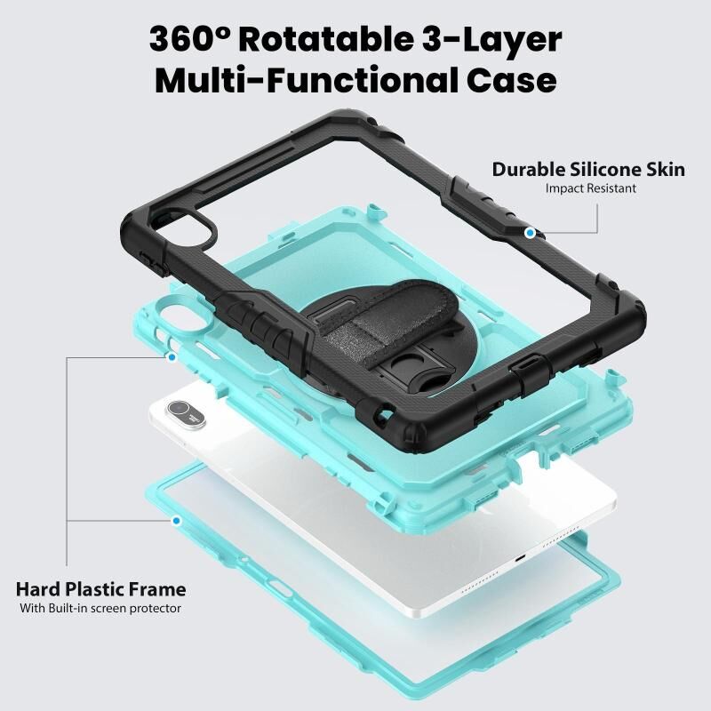 5. Λουρί ώμου: Η λαβή ώμου μπορεί να κλίνει και να ελευθερώσει εντελώς τα χέρια σας. Αυτή η λειτουργία είναι ιδανική για ταξίδια, παραγγελίες σε εστιατόρια, παρουσίαση προϊόντων στο σπίτι, εξωτερικές εργασίες μηχανικών, δασκάλων κ.λπ. Επίσης, το λουρί σας επιτρέπει να κρεμάσετε το tablet σας πίσω από το κάθισμα του αυτοκινήτου για διασκέδαση των παιδιών.