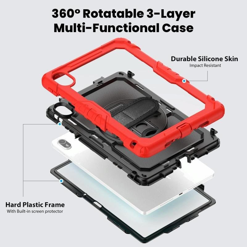 5. Λουρί ώμου: Η λαβή ώμου μπορεί να κλίνει και να ελευθερώσει εντελώς τα χέρια σας. Αυτή η λειτουργία είναι ιδανική για ταξίδια, παραγγελίες σε εστιατόρια, παρουσίαση προϊόντων στο σπίτι, εξωτερικές εργασίες μηχανικών, δασκάλων κ.λπ. Επίσης, το λουρί σας επιτρέπει να κρεμάσετε το tablet σας πίσω από το κάθισμα του αυτοκινήτου για διασκέδαση των παιδιών.