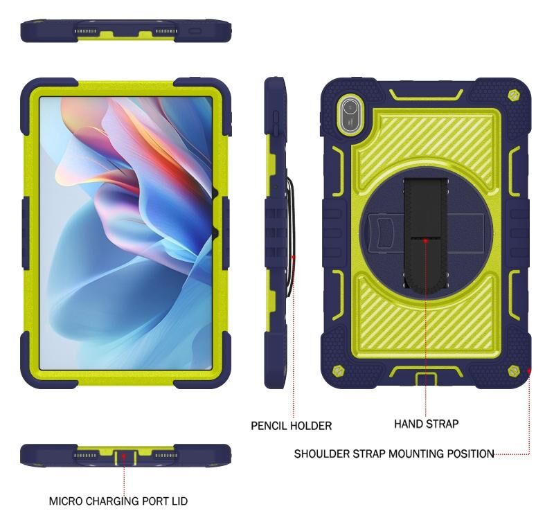 Για Huawei MatePad SE 11 360 μοίρες περιστροφή PC αντίθεση σιλικόνης Tablet υπόθεση (ναυτικό μπλε + κίτρινο πράσινο)