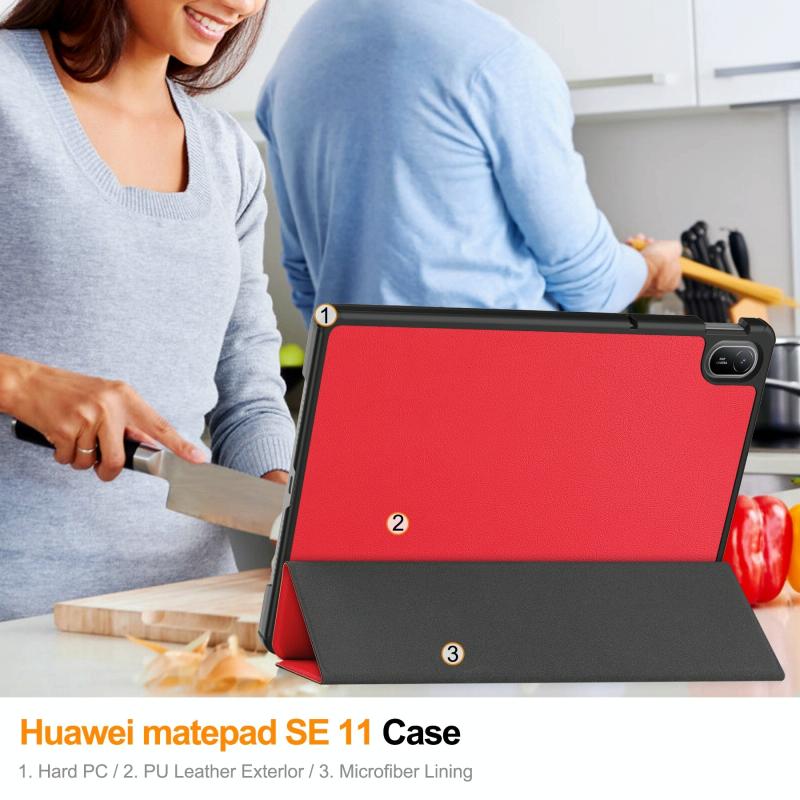 For Huawei Matepad SE 11 Custer Pure Color 3-Fold Holder Smart Leather Tablet Case(Red)