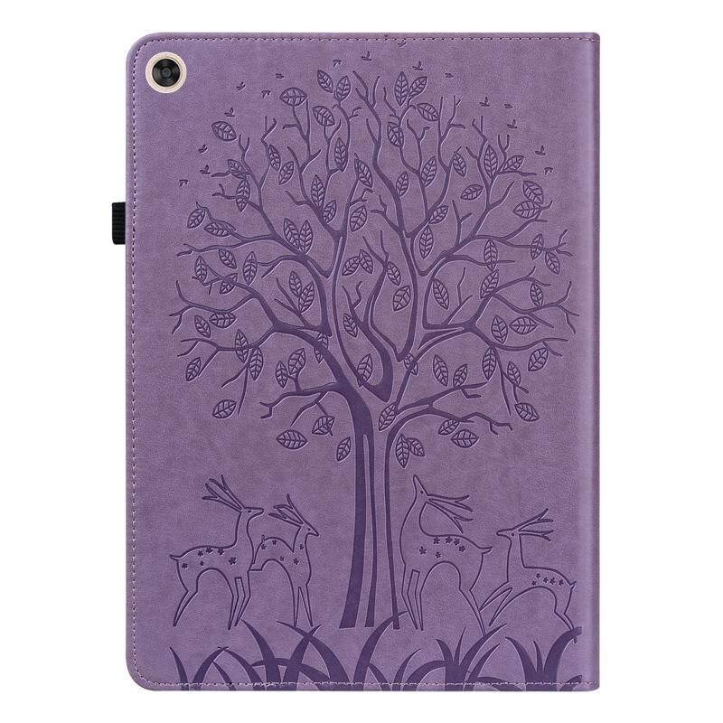Θήκη Tablet Δερμάτινη με Εκτύπωση σε Ρελιέ με Μοτίβο Δέντρου & Ελαφιού για Huawei MatePad T 10s 10.1 ιντσών / T 10 9.7 ιντσών (Μωβ)