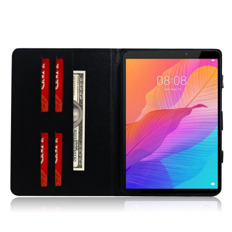 Θήκη δέρματος οριζόντιας αναδίπλωσης 3D με σχέδιο και χρώματα για Huawei MatePad T8, με βάση στήριξης, θήκη για κάρτες, πορτοφόλι και λαβή (Λευκή Τίγρη)