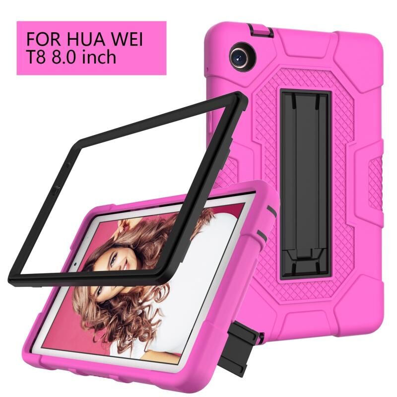 Για το Huawei MatePad T8 Contrast Color Robot B3 Υβριδική θήκη tablet PC σιλικόνης με θήκη (Rose Red Black)