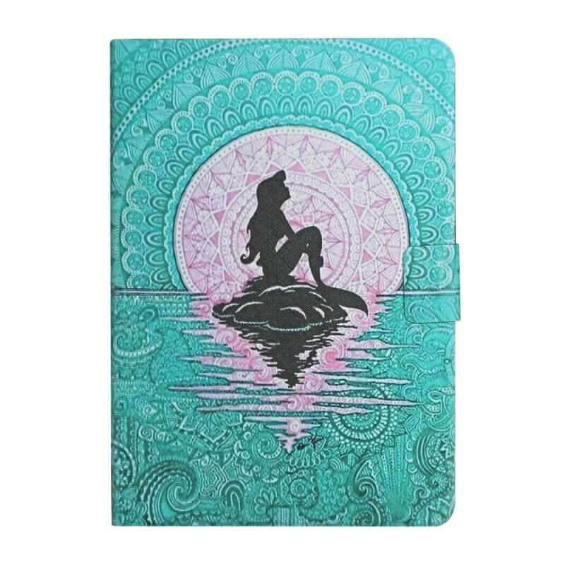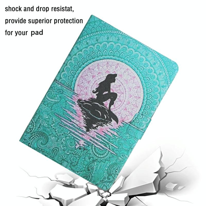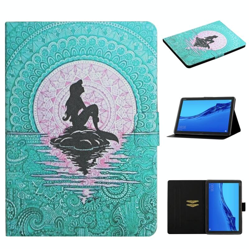 Θήκη δέρματος οριζόντιας αναδίπλωσης με σχέδιο πολύχρωμης ζωγραφικής για Huawei MediaPad M5 Lite με βάση στήριξης & υποδοχές καρτών & λειτουργία ύπνου/αφύπνισης (Γοργόνα)