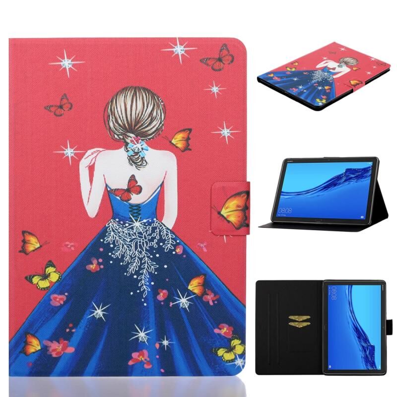 Θήκη δέρματος οριζόντιας αναδίπλωσης με σχέδιο και χρώματα για Huawei MediaPad M5 lite, με βάση στήριξης & υποδοχή κάρτας & λειτουργία αφύπνισης/ύπνου (Πλάτη κοριτσιού)