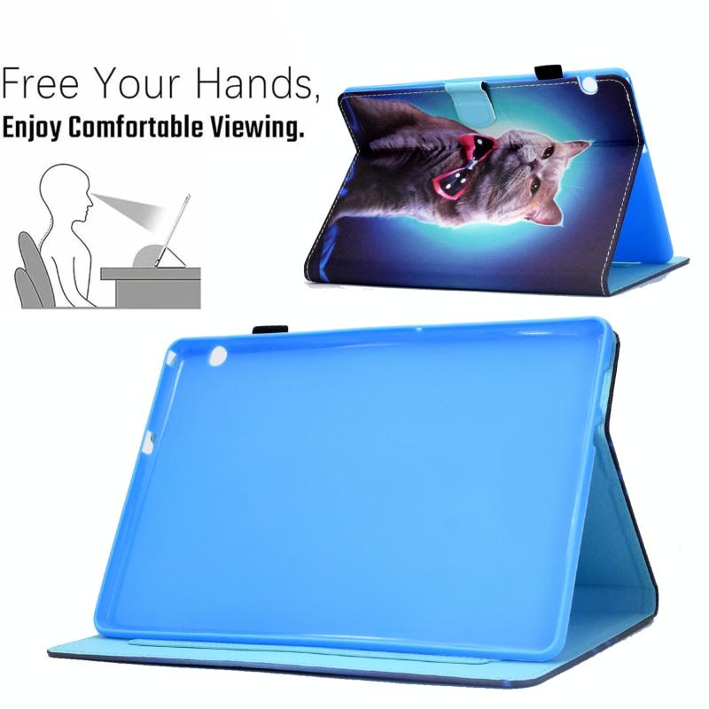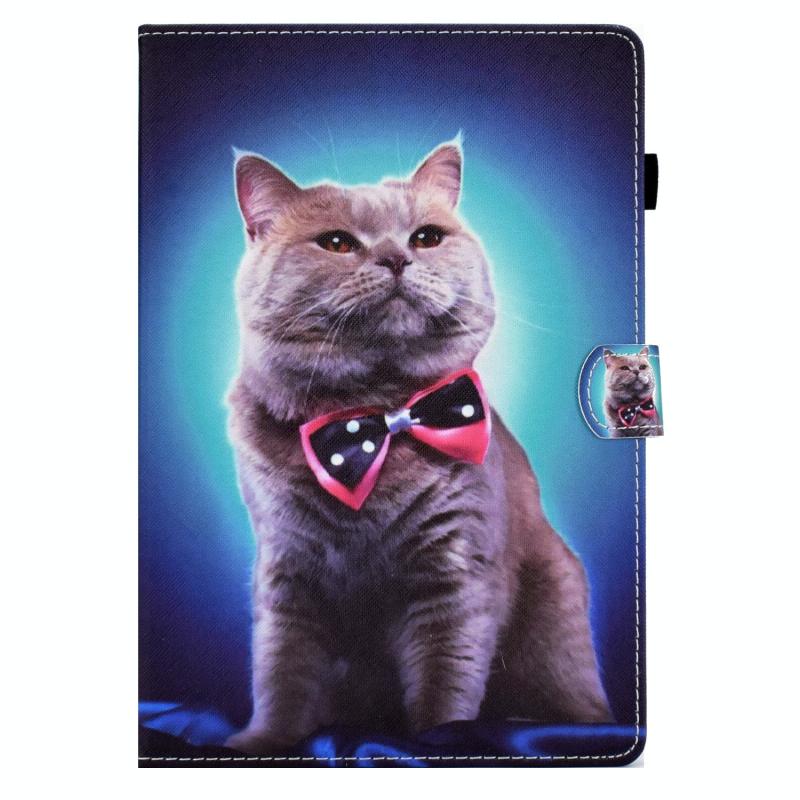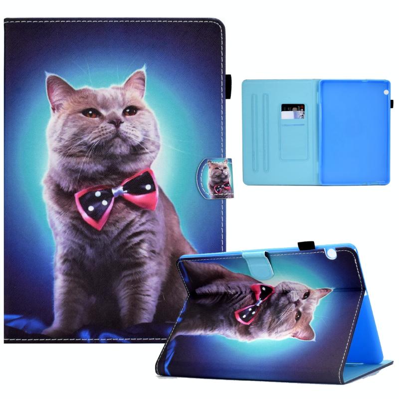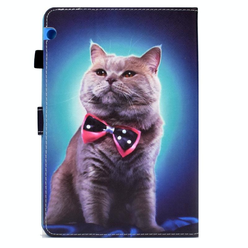 For Huawei MediaPad T5 Sewing Pen Slot Leather Tablet Case(Bow Tie Cat)
