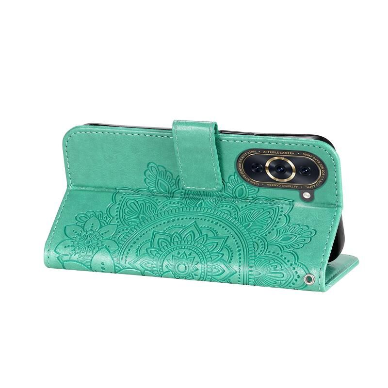 Θήκη τηλεφώνου από δέρμα με ανάγλυφα 7 πέταλα λουλουδιών για Huawei nova 10 (Ανοιχτό Μωβ)