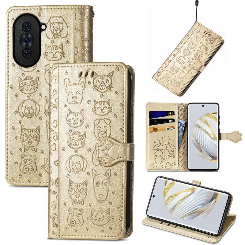 Θήκη τηλεφώνου Huawei Nova 10 με ανάγλυφο σχέδιο γάτας και σκύλου από δέρμα (Κίτρινο)