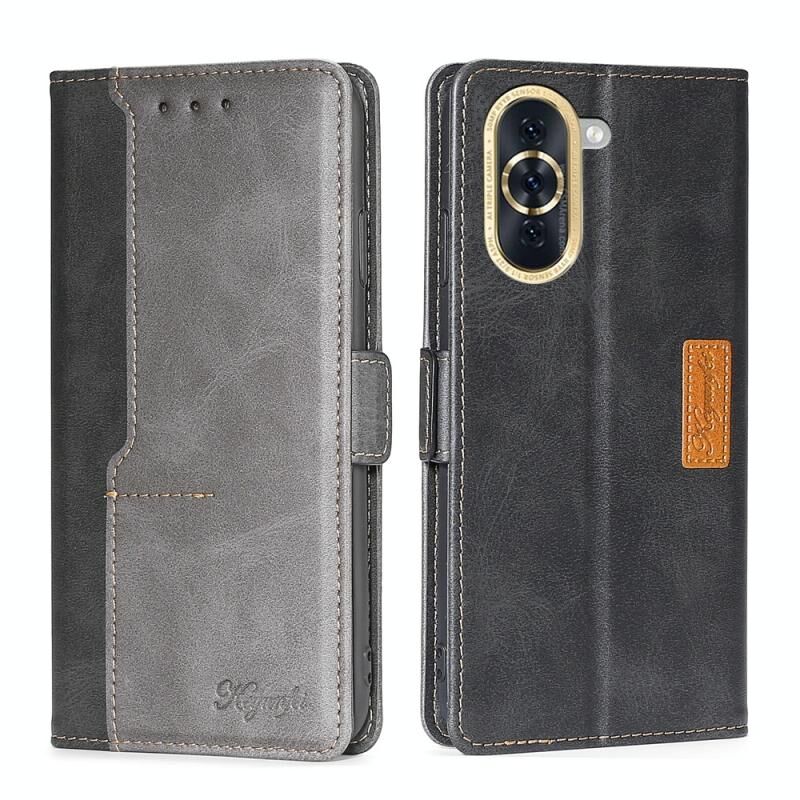 Για Huawei nova 10 Αντίθετο χρώμα πλευρά πόρπη δερμάτινη θήκη τηλεφώνου (μαύρο + γκρι)