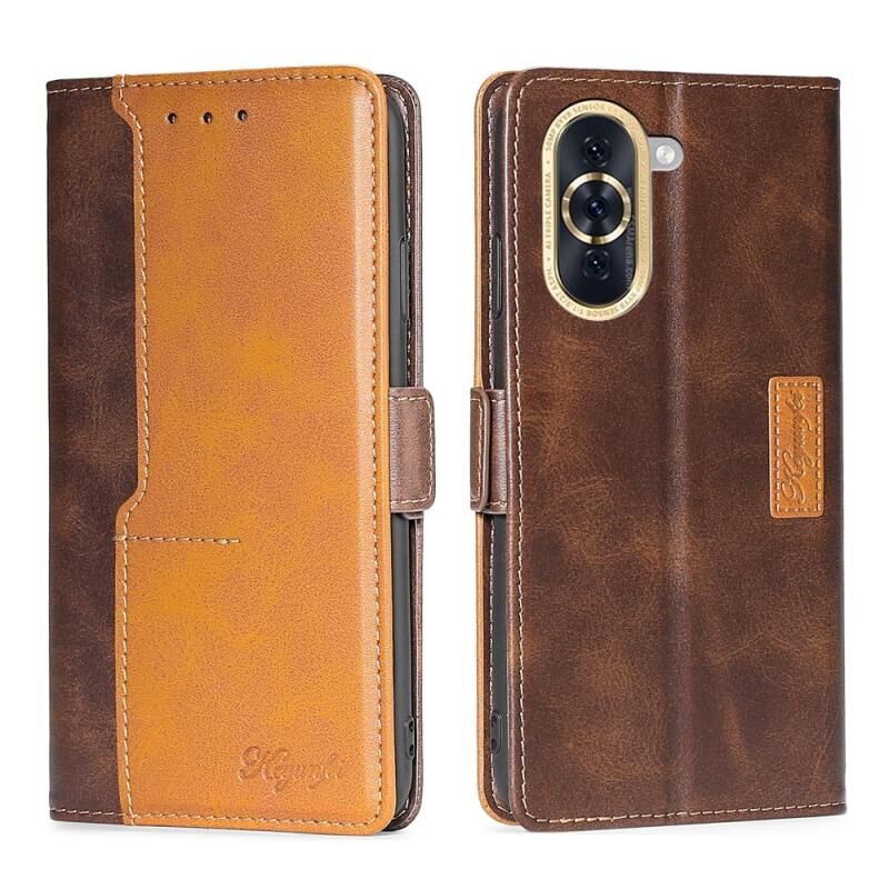 Για Huawei nova 10 Αντίθετο χρώμα πλευρά πόρπη δερμάτινη θήκη τηλεφώνου (σκούρο καφέ + χρυσό)