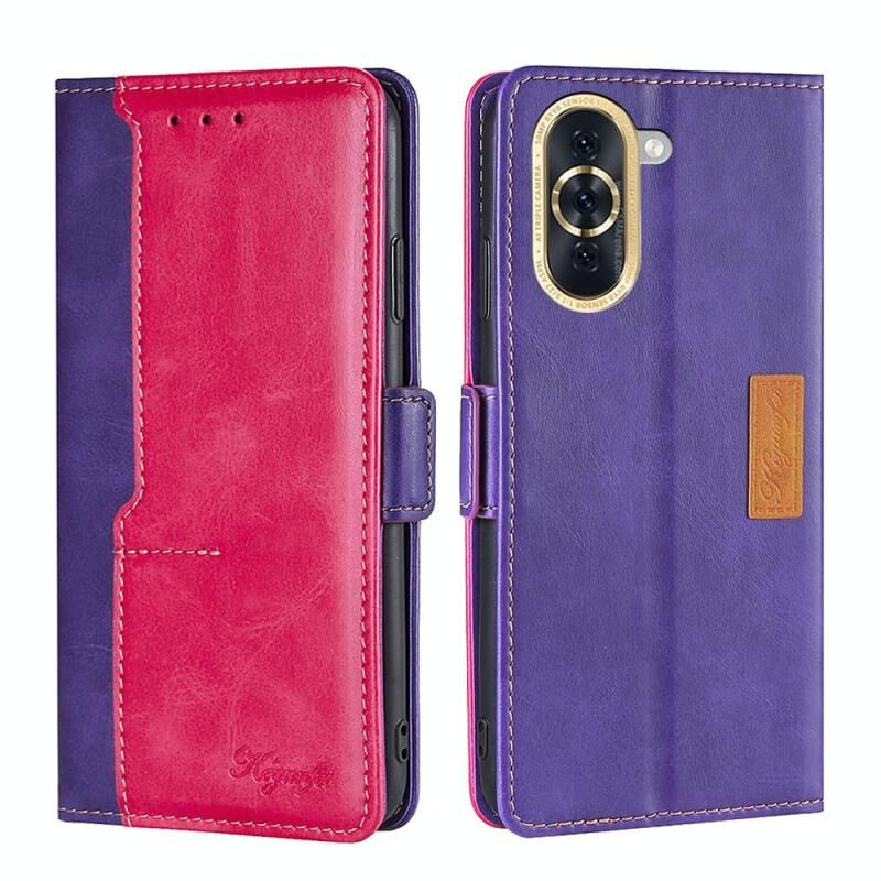 Για Huawei nova 10 Αντίθετο χρώμα πλευρά πόρπη δερμάτινη θήκη τηλεφώνου (Purple + Rose Red)