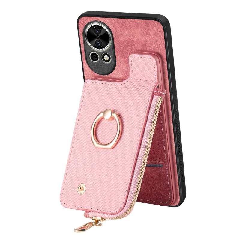 Για Huawei nova 10 Δερμάτινη Θήκη Πορτοφόλι με Δαχτυλίδι & Φερμουάρ (Ροζ)