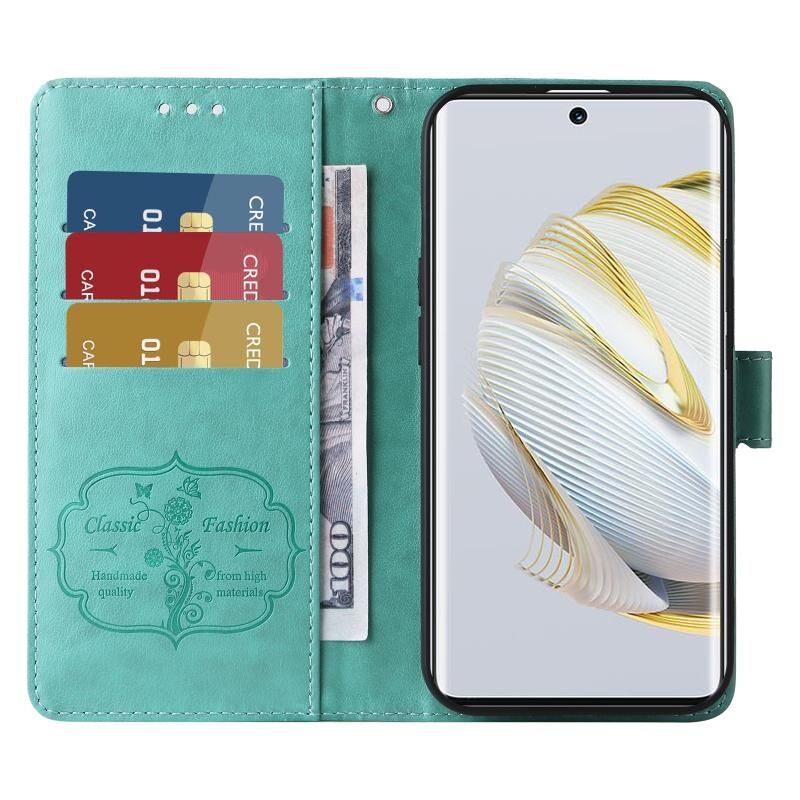 Θήκη τηλεφώνου δερμάτινη με ανάγλυφα λουλούδια και πεταλούδες για Huawei nova 10 (Μωβ)