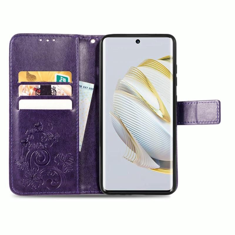 Για Huawei Nova 10 τετράφυλλο κούμπωμα ανάγλυφο αγκράφα δερμάτινη θήκη τηλεφώνου (μωβ)