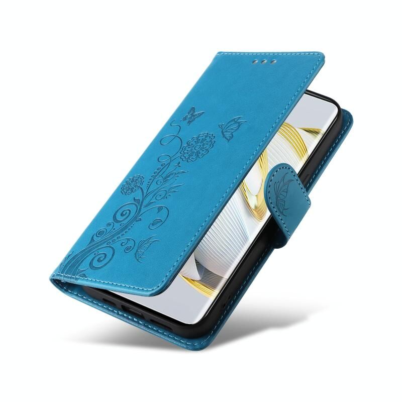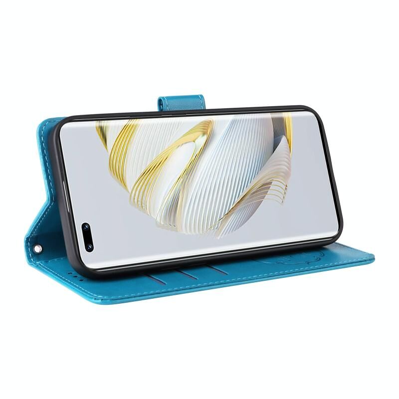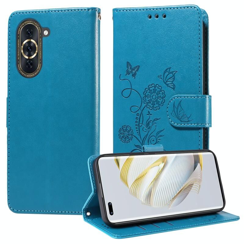 Θήκη τηλεφώνου δερμάτινη με ανάγλυφα λουλούδια και πεταλούδες για Huawei nova 10 Pro (Μωβ)