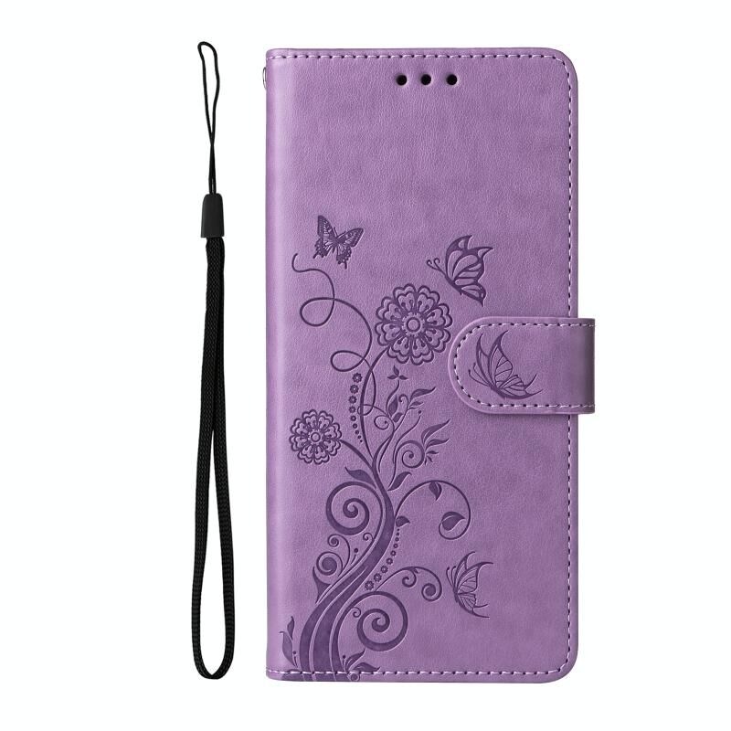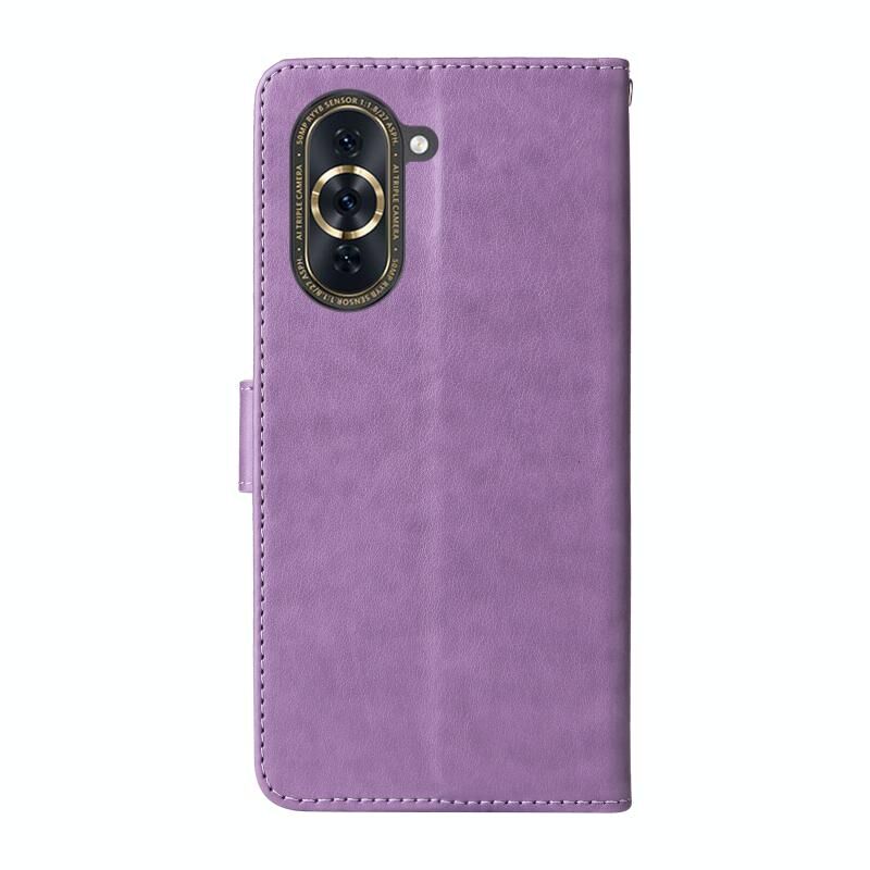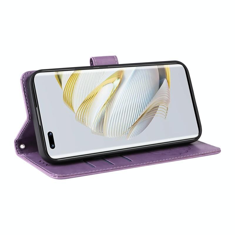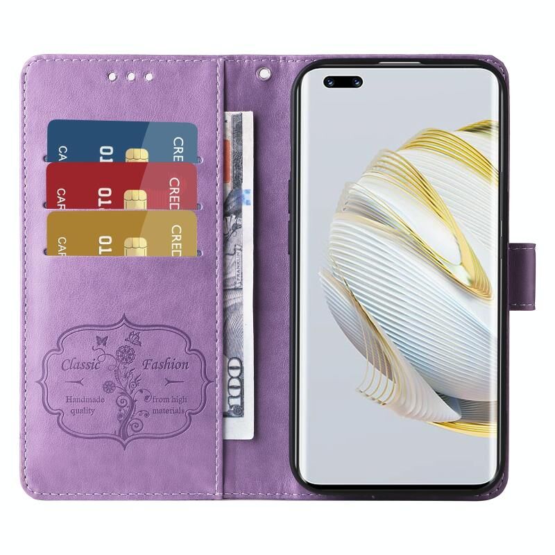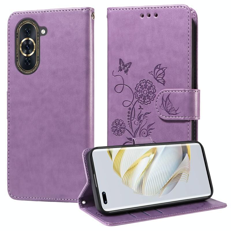 Θήκη τηλεφώνου δερμάτινη με ανάγλυφα λουλούδια και πεταλούδες για Huawei nova 10 Pro (Μωβ)
