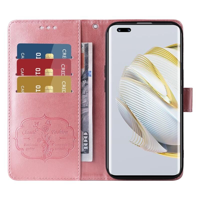 Θήκη τηλεφώνου δερμάτινη με ανάγλυφα λουλούδια και πεταλούδες για Huawei nova 10 Pro (Μωβ)