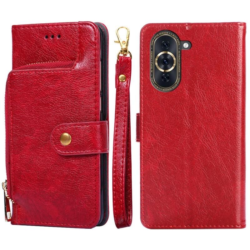 Για Huawei nova 10 Pro φερμουάρ τσάντα δερμάτινη θήκη τηλεφώνου (κόκκινο)