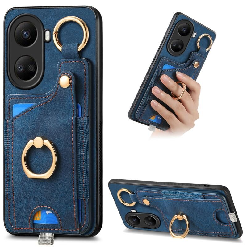 Για Huawei nova 10 SE 4G ρετρό δέρμα-άισθησης δαχτυλίδι τσάντα κάρτα υπόθεση τηλεφώνου με Hang Loop (Μπλε)