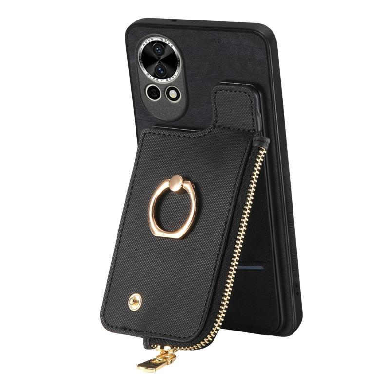 Θήκη Huawei nova 10 SE Δερμάτινη με Δαχτυλίδι & Φερμουάρ (Μαύρο)