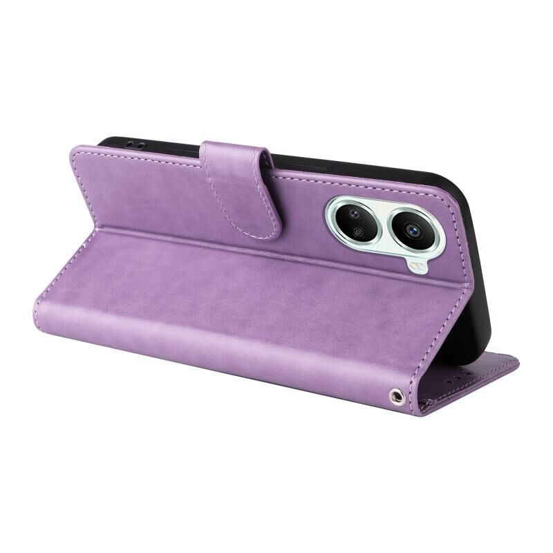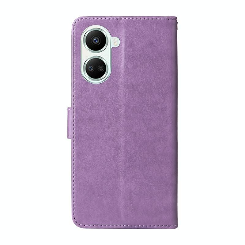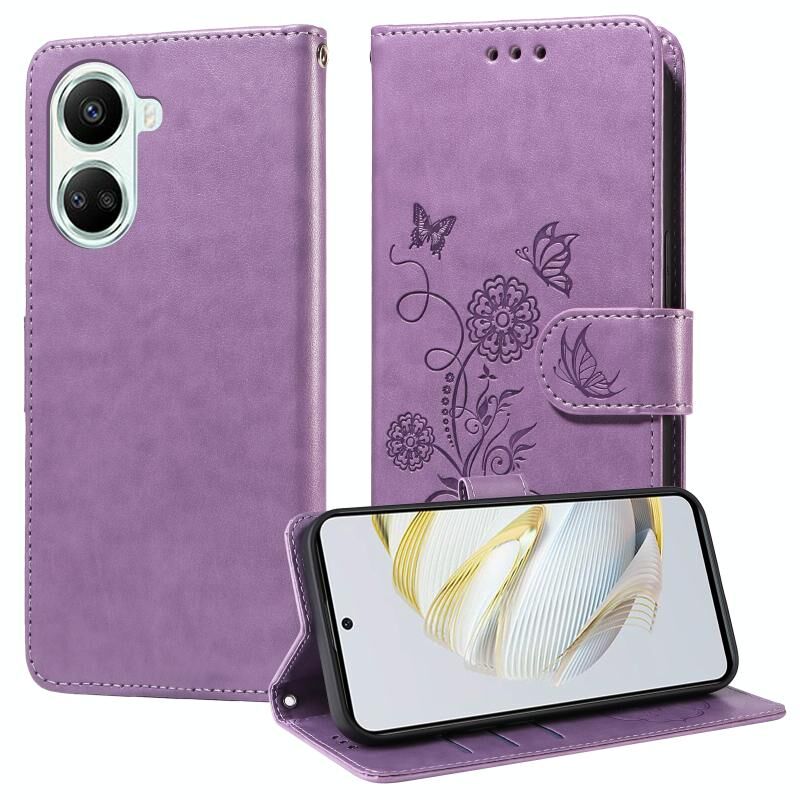 Θήκη τηλεφώνου από δέρμα με ανάγλυφα λουλούδια και πεταλούδες για Huawei nova 10 SE (Μωβ)