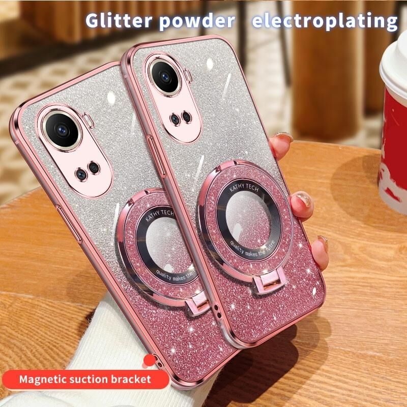 Για Huawei nova 10 SE Επιμεταλλωμένο διαβάθμιση Glitter στρογγυλό κάτοχος TPU τηλέφωνο υπόθεση (ροζ)