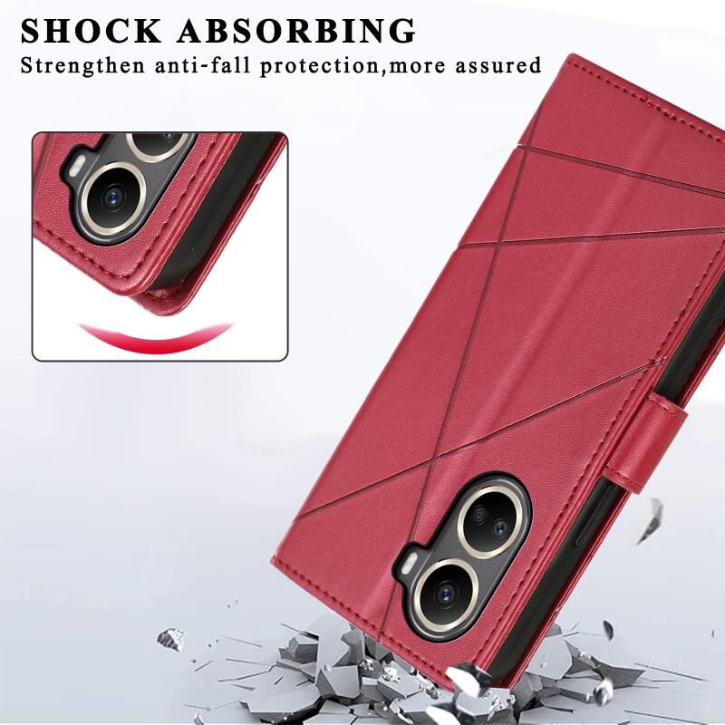 Θήκη τηλεφώνου Huawei nova 10 SE από γνήσιο δέρμα PU με ανάγλυφη υφή και λεπτομέρειες γραμμής (Μπλε)