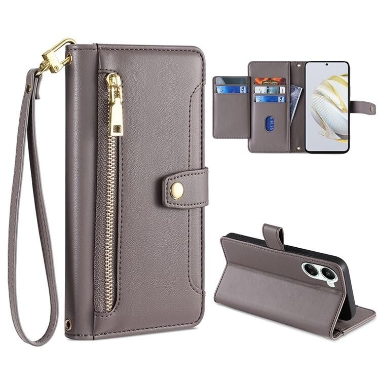 Θήκη τηλεφώνου Huawei Nova 10 SE από δέρμα με υφή προβάτου, διαγώνια, με φερμουάρ και θήκη πορτοφολιού (Μαύρο)