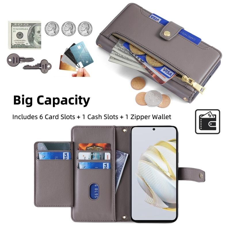 2. Λειτουργία πορτοφολιού πολλαπλών καρτών: Θήκες για κάρτες και διαμέρισμα με φερμουάρ για την αποθήκευση των πιστωτικών σας καρτών, μετρητών ή μικρών σημειώσεων για καθημερινή χρήση.