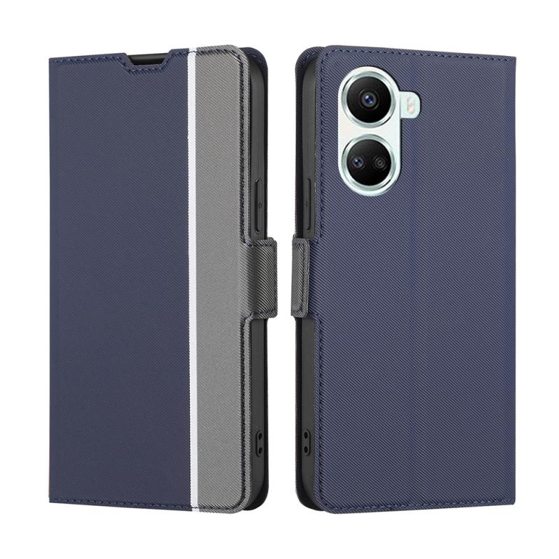 Θήκη τηλεφώνου από δέρμα με υφή Twill και πλευρική αγκράφα για Huawei nova 10 SE (Μπλε)