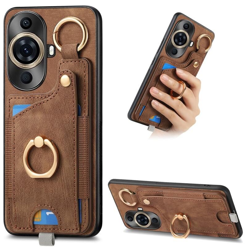 Για Huawei nova 11 4G Ρετρό δέρμα αίσθηση δαχτυλίδι κάρτα τσάντα υπόθεση τηλεφώνου με Hang Loop (καφέ)