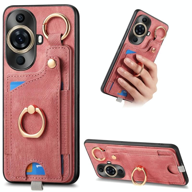 Για Huawei nova 11 4G Retro δέρμα-άισθησης δαχτυλίδι τσάντα κάρτα υπόθεση τηλεφώνου με Hang Loop (ροζ)