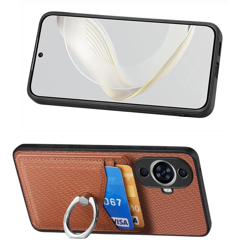 Για Huawei nova 11 Carbon Fiber κάρτα πορτοφόλι δαχτυλίδι υπόθεση τηλεφώνου (καφέ)